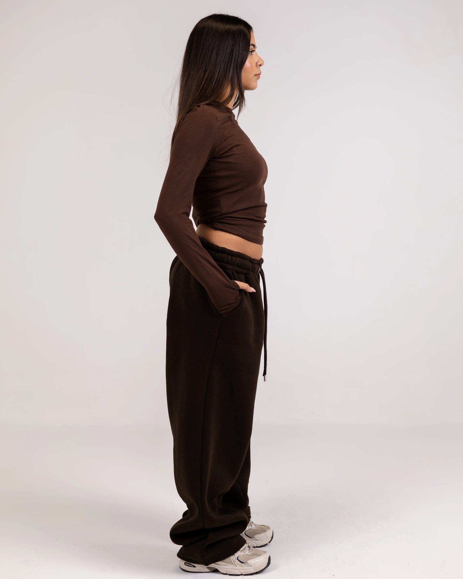 Meet your new favorite comfort essential—chocolate brown wide-leg sweatpants that play beautifully with our brown double zipper and cotton basics. Whether you're lounging or running errands, these cozy bottoms deliver effortless style in eight different sizes. Check out how our models rock them: Small, XL, 3XL and 4XL all look amazing, proving these sweatpants work for every body and every vibe.