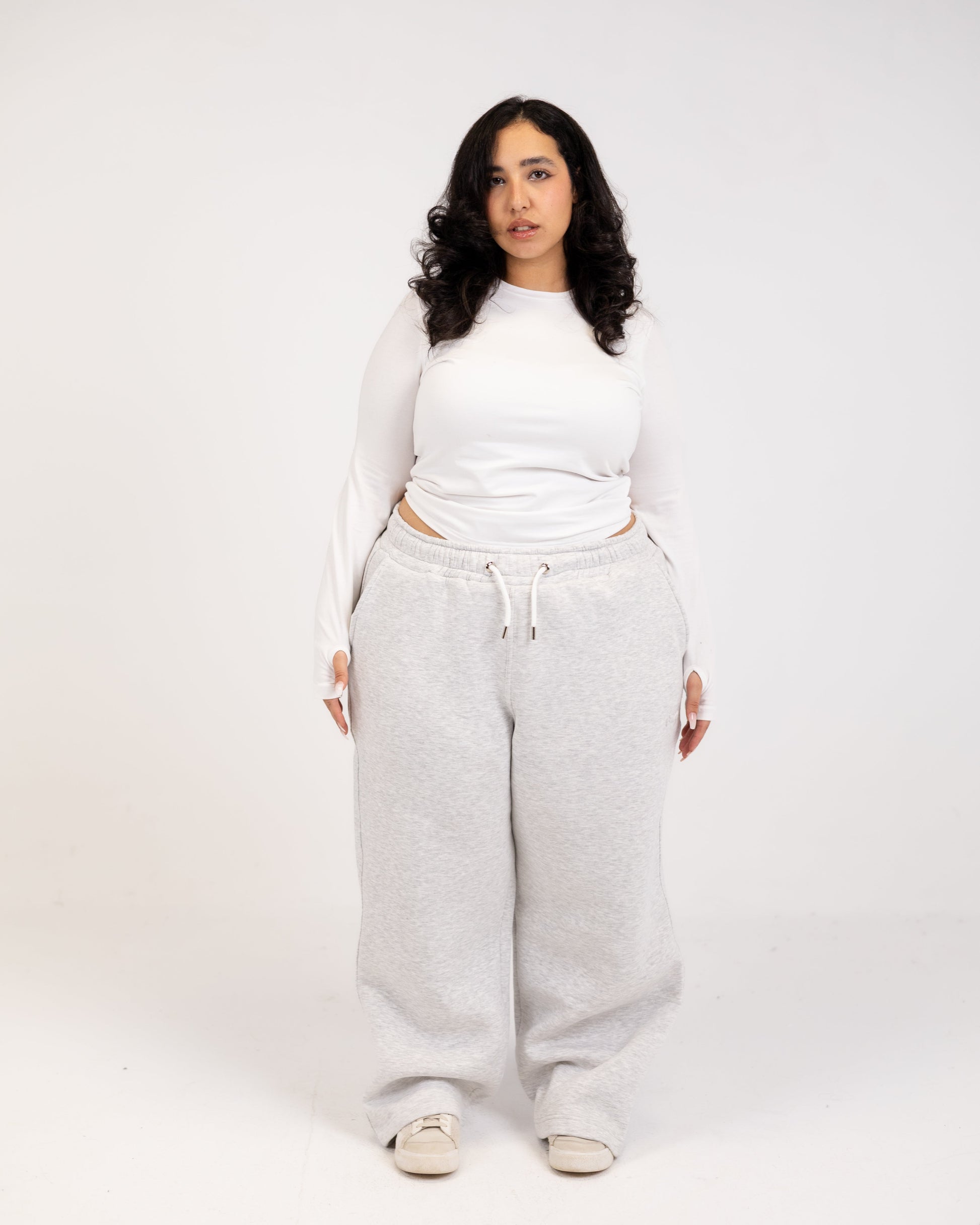 Meet your new favorite comfort essential— grey wide-leg sweatpants that play beautifully with our grey mamina hoodie and cotton basics. Whether you're lounging or running errands, these cozy bottoms deliver effortless style in eight different sizes. Check out how our models rock them: Small, XL, 3XL and 5XL all look amazing, proving these sweatpants work for every body and every vibe.